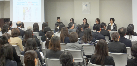 パネル・ディスカッションには、4名の女性管理職(課長・主任)が登壇しました。各氏は、女性管理職としてのやりがいやプレッシャー等を率直に披露。参加者からの「子育てと仕事の両立について」の質問にも体験に即して応じ、建設的な対話が行われました。