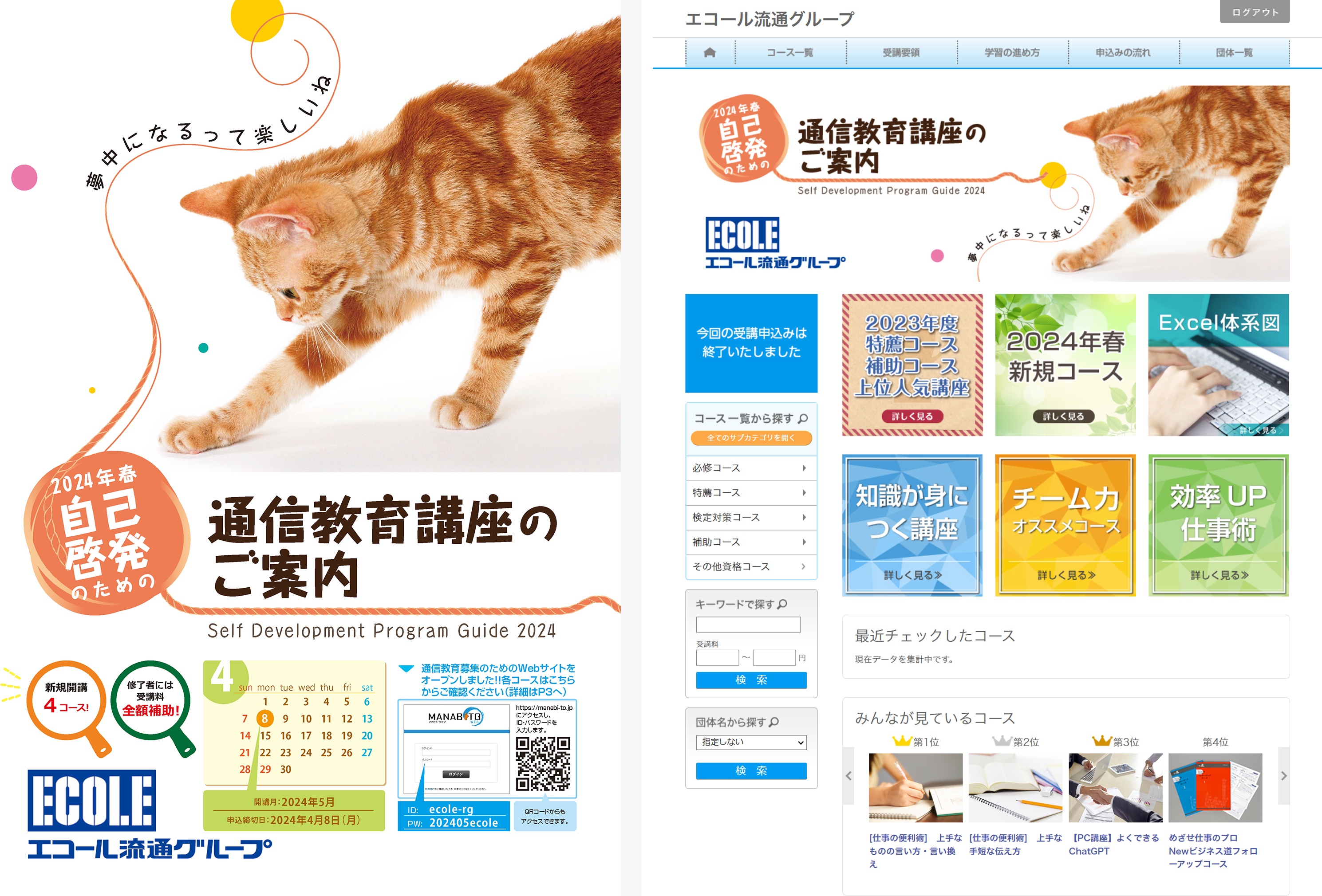 当社の通信教育講座は毎年春(5月)と秋(11月)の年2回開講で、じつは先日、2024年春のガイドをグループ全社員に向けて配布したところなんです(※取材時は3月下旬)。