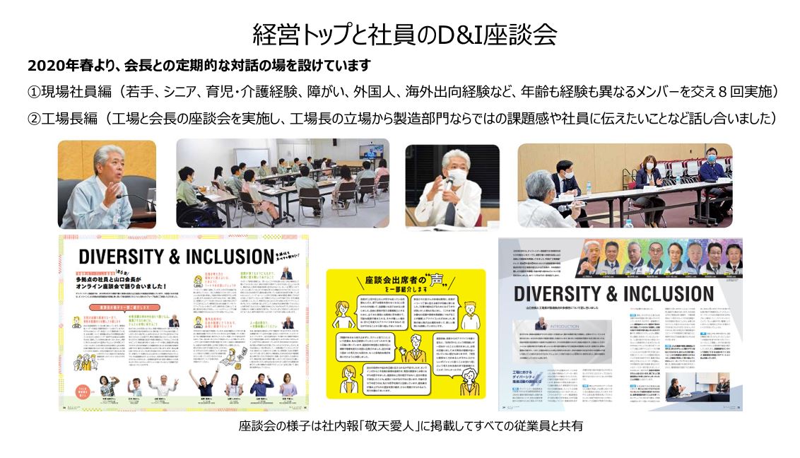 彼らが一緒に働く現場の仲間からの意見を吸い上げて、私たちに提言してくれることと同時に、私たちが行う施策をベースに、各拠点に合わせたかたちで推進活動を実施しています。これらの活動がかみ合うことによって、社員誰一人取残さないダイバーシティ推進を目指していきます。
