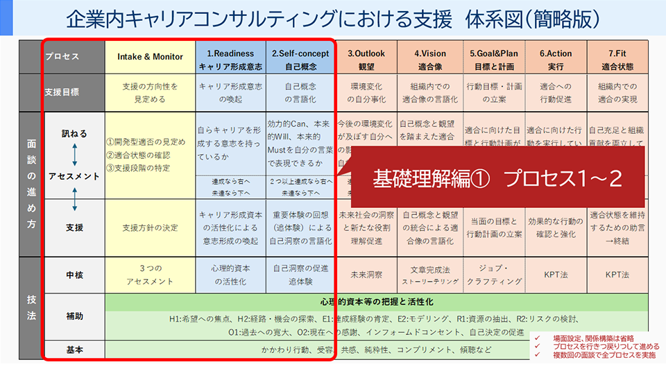 2.企業内で行われるキャリアコンサルティング(開発型)の支援プロセスと面談の進め方、技法を習得すること