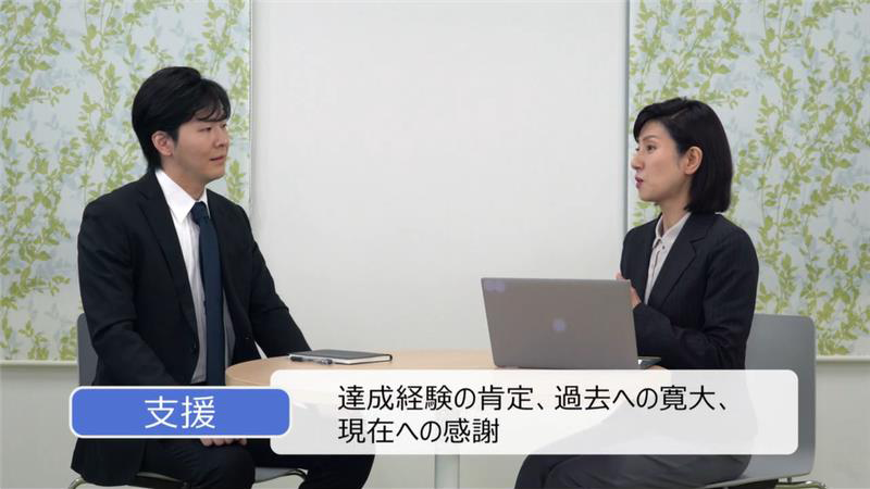 ■動画教材を視聴して、面談の進め方と技法を具体的に確認します