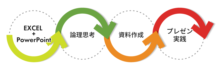 実際にExcelとPowerPoint上で手を動かしながら学ぶ演習で確実な理解と記憶の定着を促します。