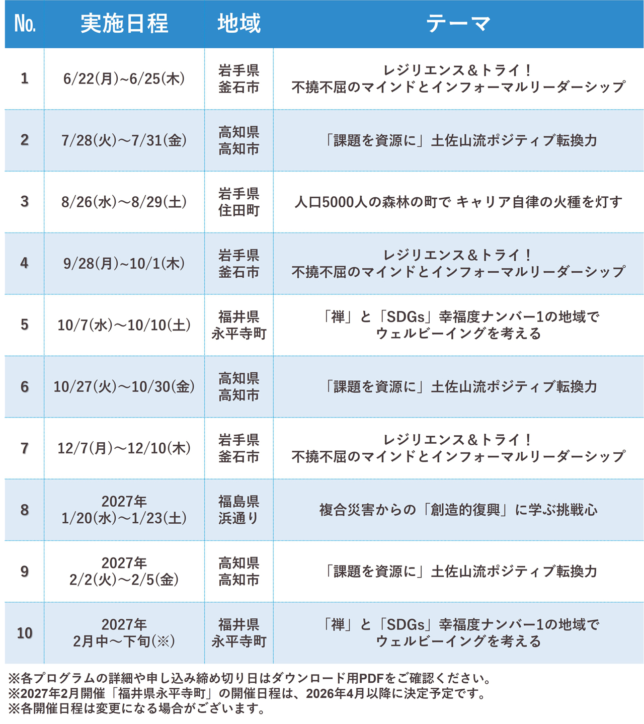 各プログラムの詳細およびお申し込みは、特設サイトをご確認ください。