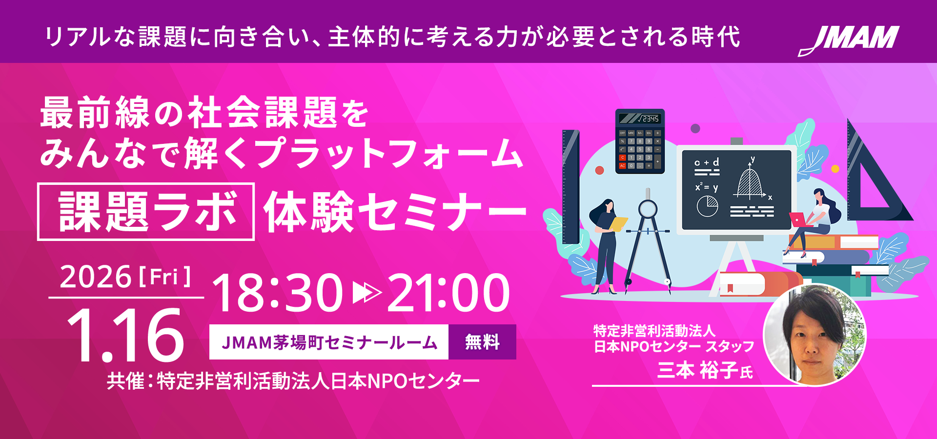 ライブ配信 無料 リーダーシップ ライブ配信 研修プログラム説明会 リーダーに求められる5つの「人間力」でブレない軸を創る ~私の道しるべ~ MY MOTTO リーダー(経営人材)として組織を牽引するためには、知識・スキルだけではなく、リーダーとしての経営観・哲学をもち、それに基づいて行動する「人間力」が重要になります。MY MOTTOは、リーダーに求められる5つの「人間力」を磨き、経営幹部にふさわしい自身のぶれない軸を創ることをつうじて、人を動かす真のリーダーをめざすプログラムです。経営人材の育成に課題をお持ちの人事・人材開発ご担当者様、ぜひご参加ください。 開催日:2025年12月22日(月) 15:00 ~ 16:00(受付開始:14:55~) ライブ配信 無料 ファシリテーション ライブ配信 出版記念セミナー『クリエイティブファシリテーション』 「厄介な問題」にズバッと切り込む会議のつくりかた 本セミナーでは書籍の発売を記念して、様々な組織で創造的な協働成果を生んできた熟達ファシリテーターであるAKI氏が、自らのノウハウを「パターン・ランゲージ」という手法で抽出・体系化したメソッドの全体像とエッセンスを説明。無駄な会議を価値を生む場へと変える具体的な方法がわかります。 開催日:2025年12月23日(火) 11:00 ~ 12:00(受付開始:10:55~) 対面型セミナー 無料 リーダーシップ 対面型セミナー 【対面開催】研修プログラム体験会 第9回30万人が体感 米国CCLのシミュレーション型リーダーシップ研修 「ルッキンググラス・エクスペリエンス」 ルッキンググラス・エクスペリエンス(以下 LGE)は、米国CCLが開発した経営シミュレーション研修です。参加者は仮想企業の経営を疑似体験しながら、自身のリーダーシップの強みと課題を把握し、継続的な能力開発方法を学びます。30万人が体感したシミュレーションに“のめり込ませる”仕組みを持つ研修プログラムの一部を体験いただけます。 開催日:2026年01月09日(金) 14:00 ~ 17:00(受付開始:13:30~) ライブ配信 無料 フィードバック ライブ配信 日常的なやりとりを、育成のチャンスに変える 基本の「型」と相手に合わせた伝え方で成果を引き出す「フィードバック」術 働き方や組織の在り方が大きく変化する中で、多くの企業で管理職からのフィードバックが課題となっております。本セミナーでは、よくある課題を取り上げながらフィードバックを効果的なものにするコツを解説。管理職が効果的なフィードバックを行うための基本プロセス(型)やタイプを体系的に学び、現場で実践できるヒントを提供します。 開催日:2026年01月15日(木) 12:15 ~ 12:45(受付開始:12:10~) NEW ライブ配信 NEW 無料 越境学習 ライブ配信 【対面開催】リアルな課題に向き合い、主体的に考える力が必要とされる時代 最前線の社会課題をみんなで解くプラットフォーム「課題ラボ」体験セミナー 「NPOが日々向き合うリアルな課題を集めて、みんなで解く仕組みがつくれないか?」、そうして生まれたのが「課題ラボ」です。世の中には、前例や既存のデータだけでは解けない課題がますます増えてきています。ではどう課題に向き合えばいいのか?そんな現状に対応できる力が身につくプラットフォーム「課題ラボ」を体験して、自社の研修への導入を検討してみませんか。 開催日:2026年01月16日(金) 18:30 ~ 21:00(受付開始:18:15~) NEW ライブ配信 NEW 無料 V-CAT ライブ配信 V-CAT 総合評価「4」人材を戦力化する配置・育成戦略 ──不採用ではなく“活かす”ためのレポート読み解き方 近年、総合評価「4」と判定される人材が増加しています。一方で、評価「4」を一律に不採用とする運用が行われがちです。適性検査は、本来「個人の性格や行動傾向、仕事の進め方、ストレス耐性、特定職務への適性」を把握し、人材配置や育成に活かすためのツールです。本セミナーでは、V-CATレポートの「4」をどう読み解けば、リスクではなく“伸びしろ”として捉えられるのかを解説します。 開催日:2026年01月22日(木) 11:00 ~ 12:00(受付開始:10:55~) ライブ配信 無料 キャリア開発 ライブ配信 研修プログラム体験会 第10回 部下のキャリアを共に描く上司が組織を強くする「部下のキャリア開発支援研修」 社員の価値観が多様化した今、鍵を握るのは、会社が求める人材像を組織が主導しながら社員のキャリア形成を支援することではなく、上司が一人ひとりの強みと志向を見極め、「ありたい姿」の実現を後押ししながら組織成果へつなげるマネジメントです。部下とキャリアビジョンを共有し、ともに成長する管理者の育成に課題をお持ちの人事・人材開発ご担当者様、ぜひご参加ください。 開催日:2026年01月30日(金) 15:00 ~ 16:30(受付開始:14:55~) 検索に戻る