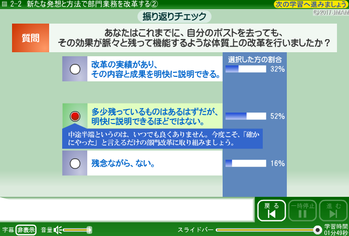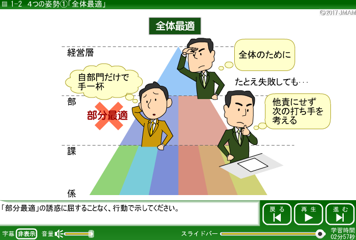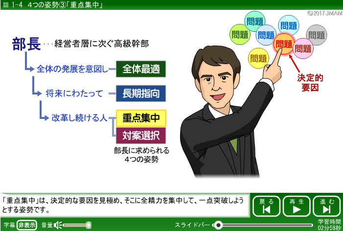 株式会社日本能率協会マネジメントセンター(代表取締役社長:長谷川隆、中央区、以下JMAM[ジェイマム])は、オンラインで学べる法人企業向け教育ツール「eラーニングライブラリ」 ※1の新コースとして、10月25日から『上級管理者コース』を開講します。