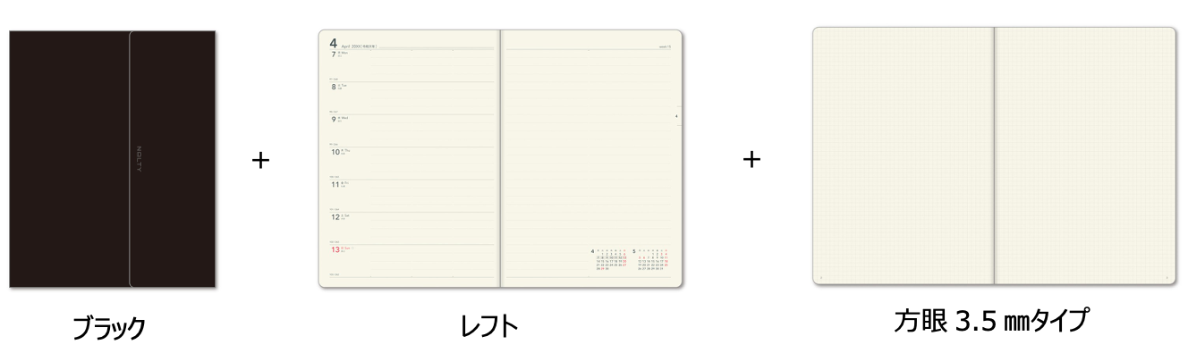 予定とメモを分けて管理できる「週間レフト」と、日付フリーの「方眼ノート」で、時期にとらわれず、自由に記録を続けられます。