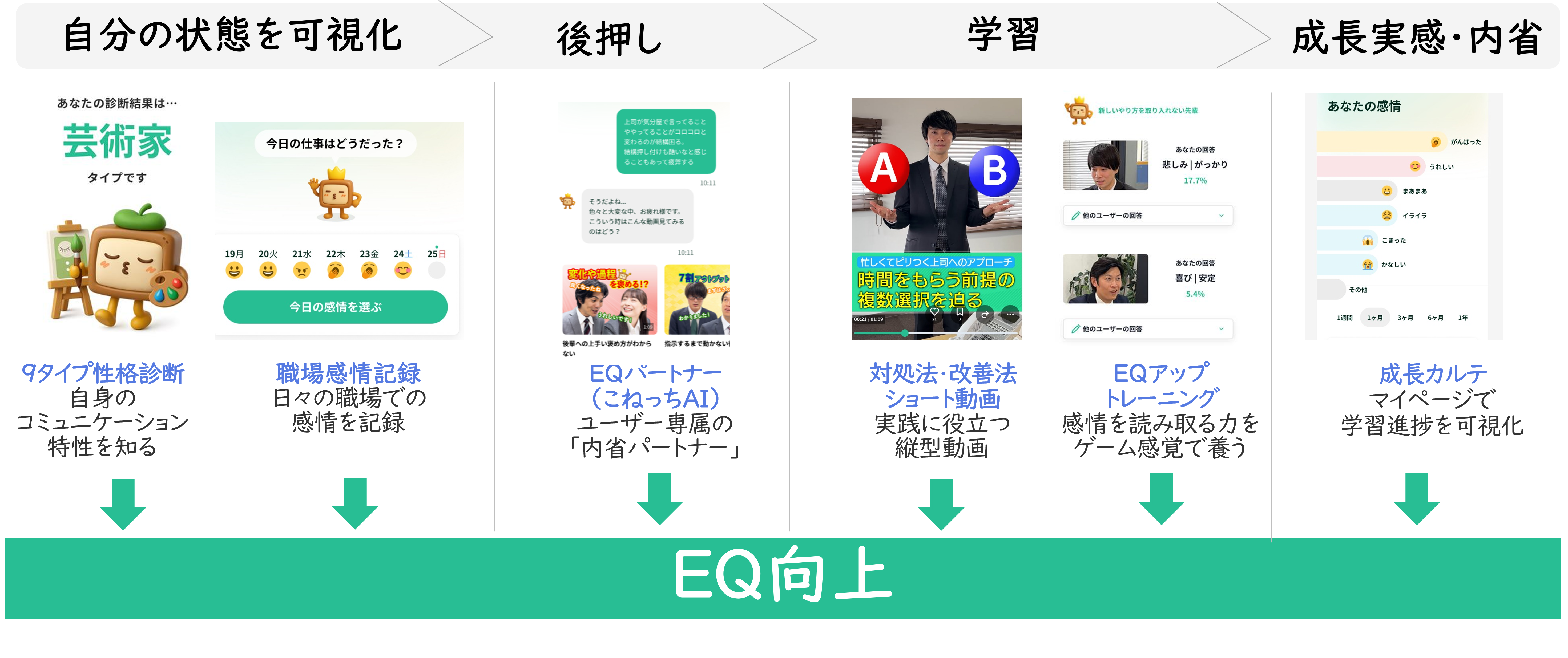 当社は本サービスの提供を通じて、従業員のEQ向上と、コミュニケーション不全の解消による健全な組織づくり、そして安定的な企業経営の実現を支援してまいります。
