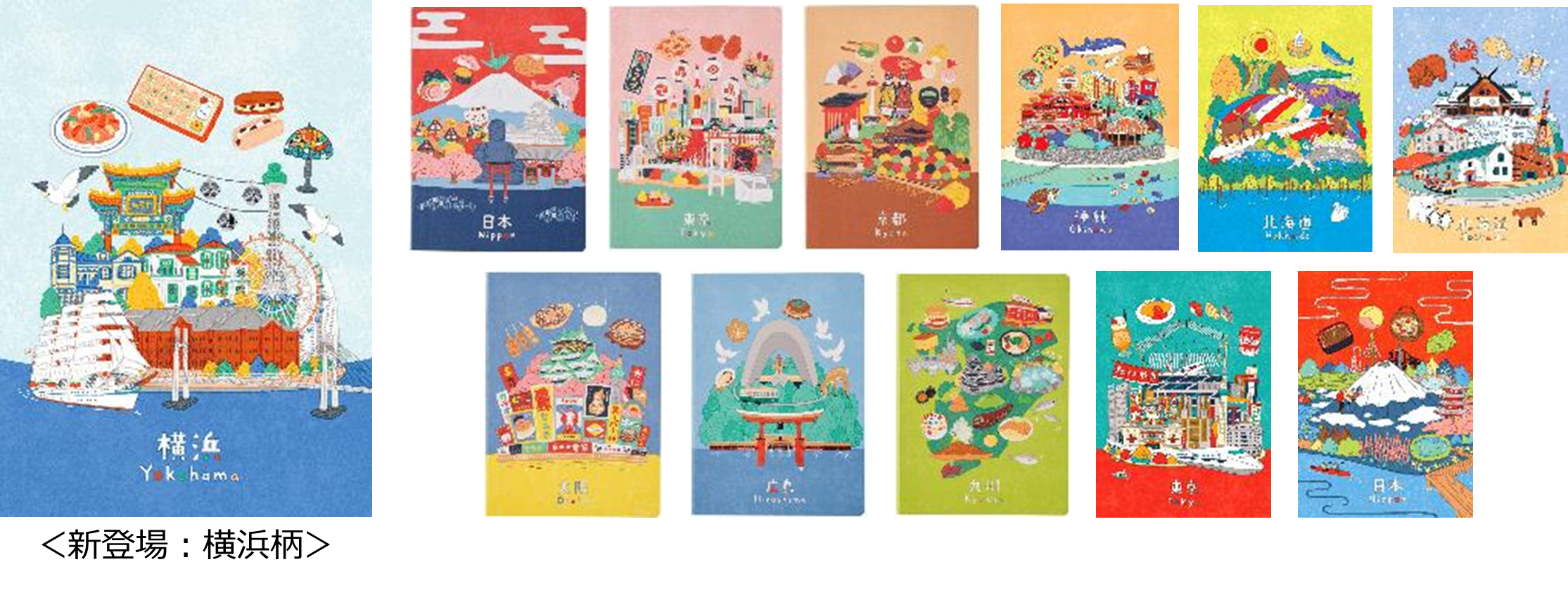 ご当地の名所や名物を描いた “かわいい表紙” が主役の「NOLTY JAPANノート」。東京・京都・大阪・広島・九州などに加え、新たに『横浜柄』も仲間入り。文庫サイズ(A6)で軽く持ち運びやすいので、スタンプ集めや旅のログにも最適。本文は3.5㎜ドット方眼のログタイプで、どんな文房具とも相性のよいホワイト用紙を採用しています。デザインの楽しさから、お土産やちょっとしたプレゼントにもぴったりの人気アイテムです。