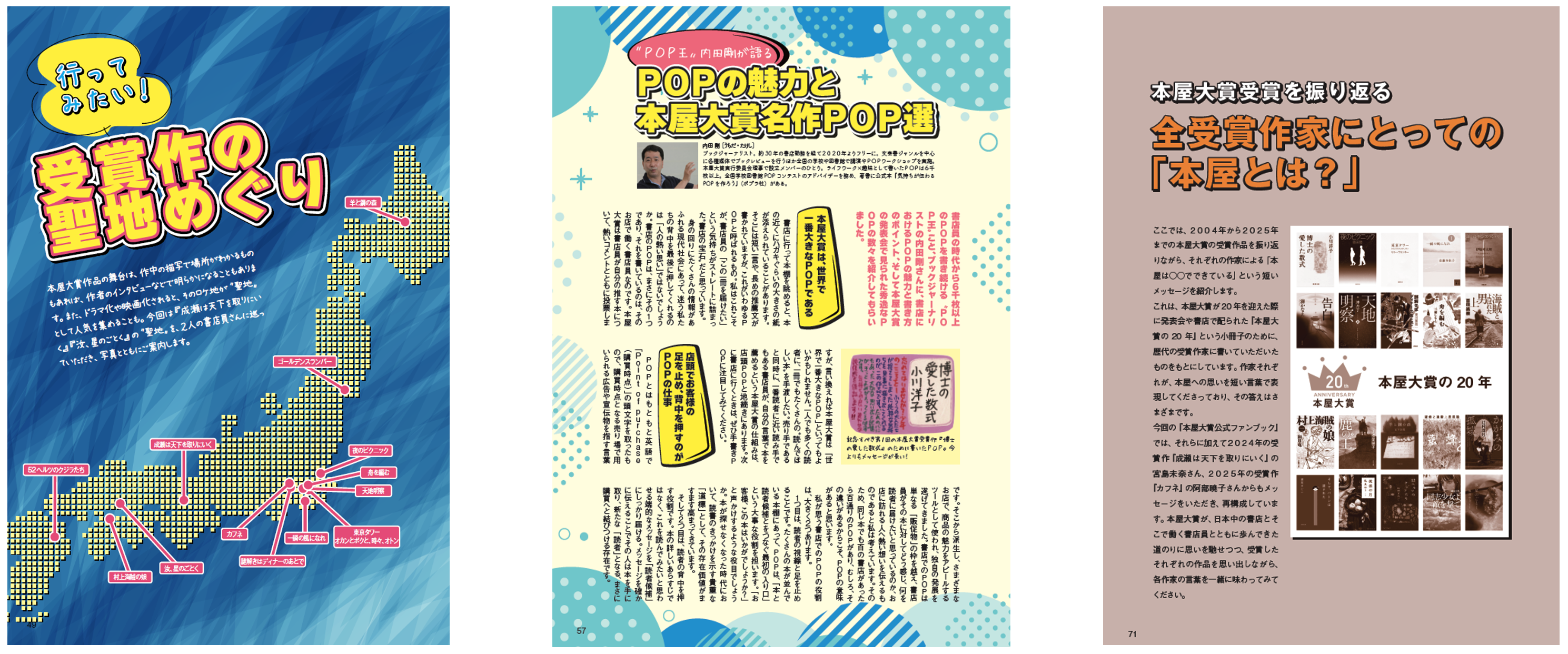 - 受賞作の聖地めぐり、傑作POP集、グッズ紹介、書店員の思いなど、本屋大賞をもっと楽しめる情報が盛りだくさん!